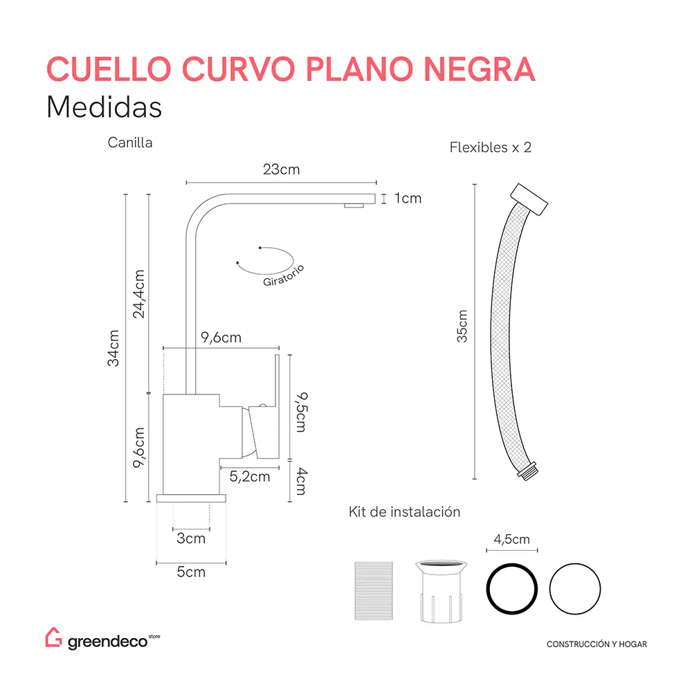 Canilla Cuello Curvo Plano Black