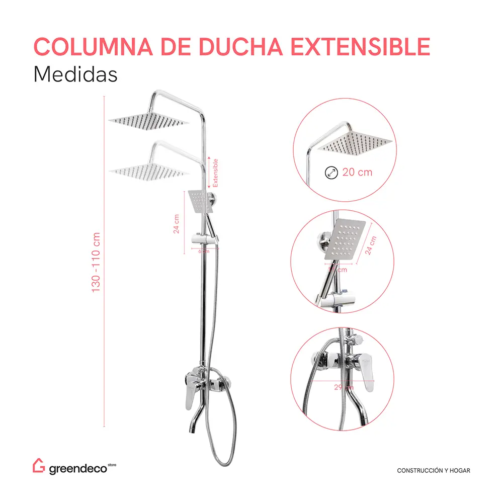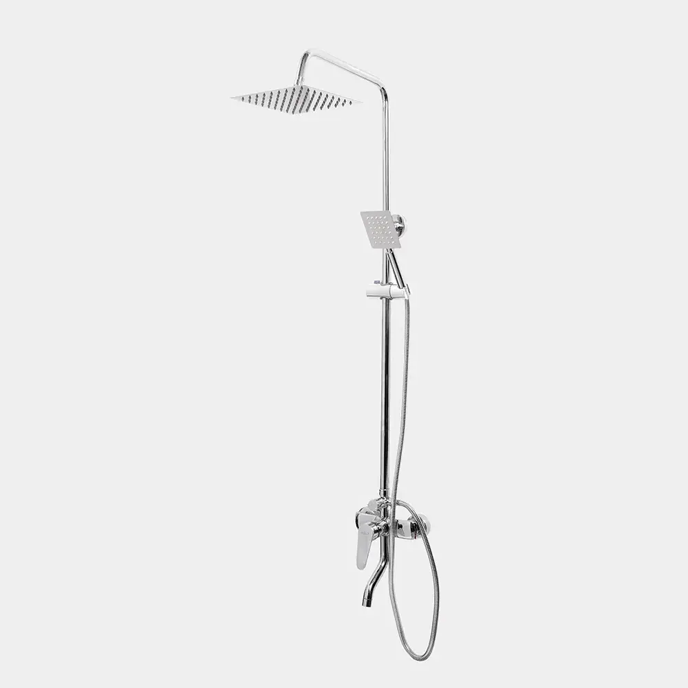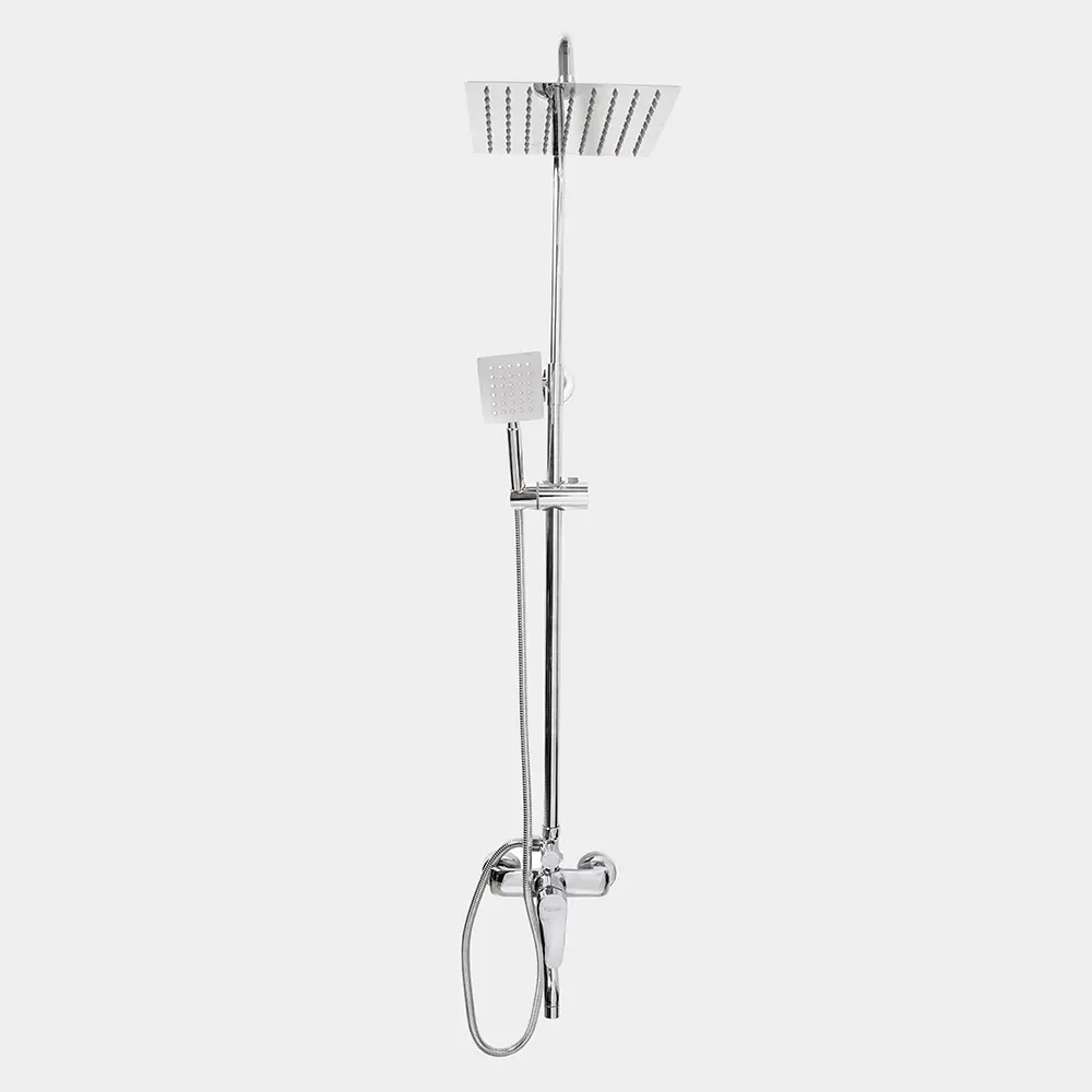 Columna de Ducha Extensible Flor Cuadrada Plateada