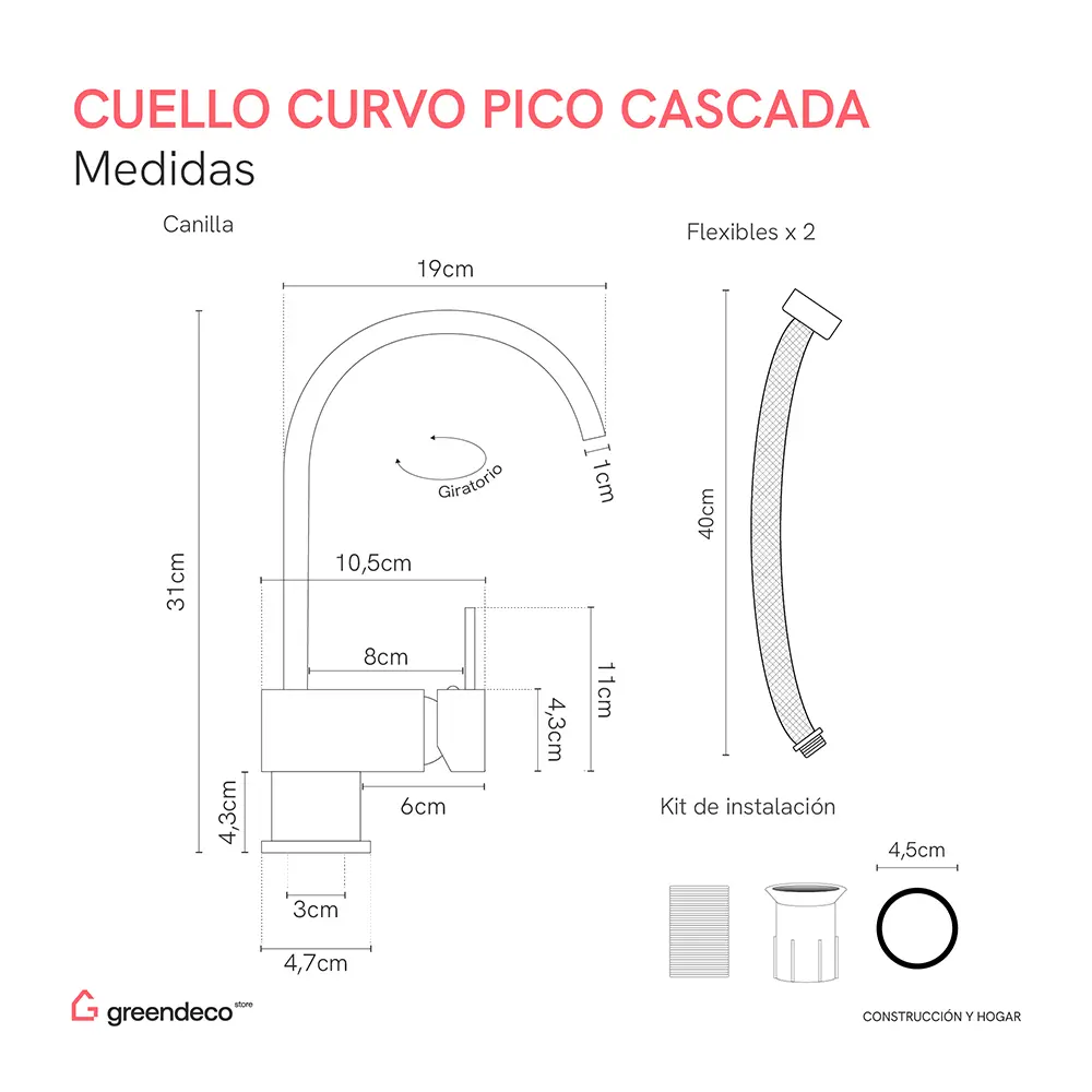 Canilla Cuello Curvo Pico Cascada