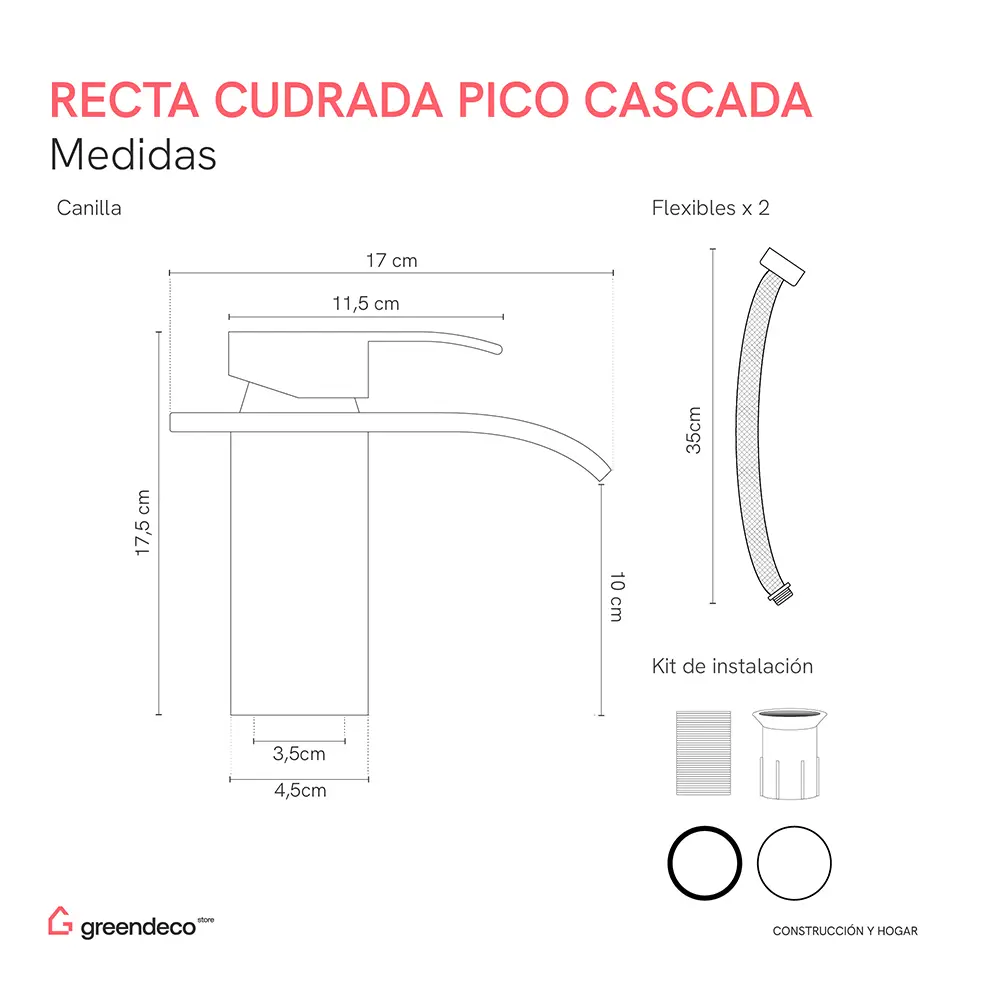 Canilla Recta Cuadrada Pico Cascada