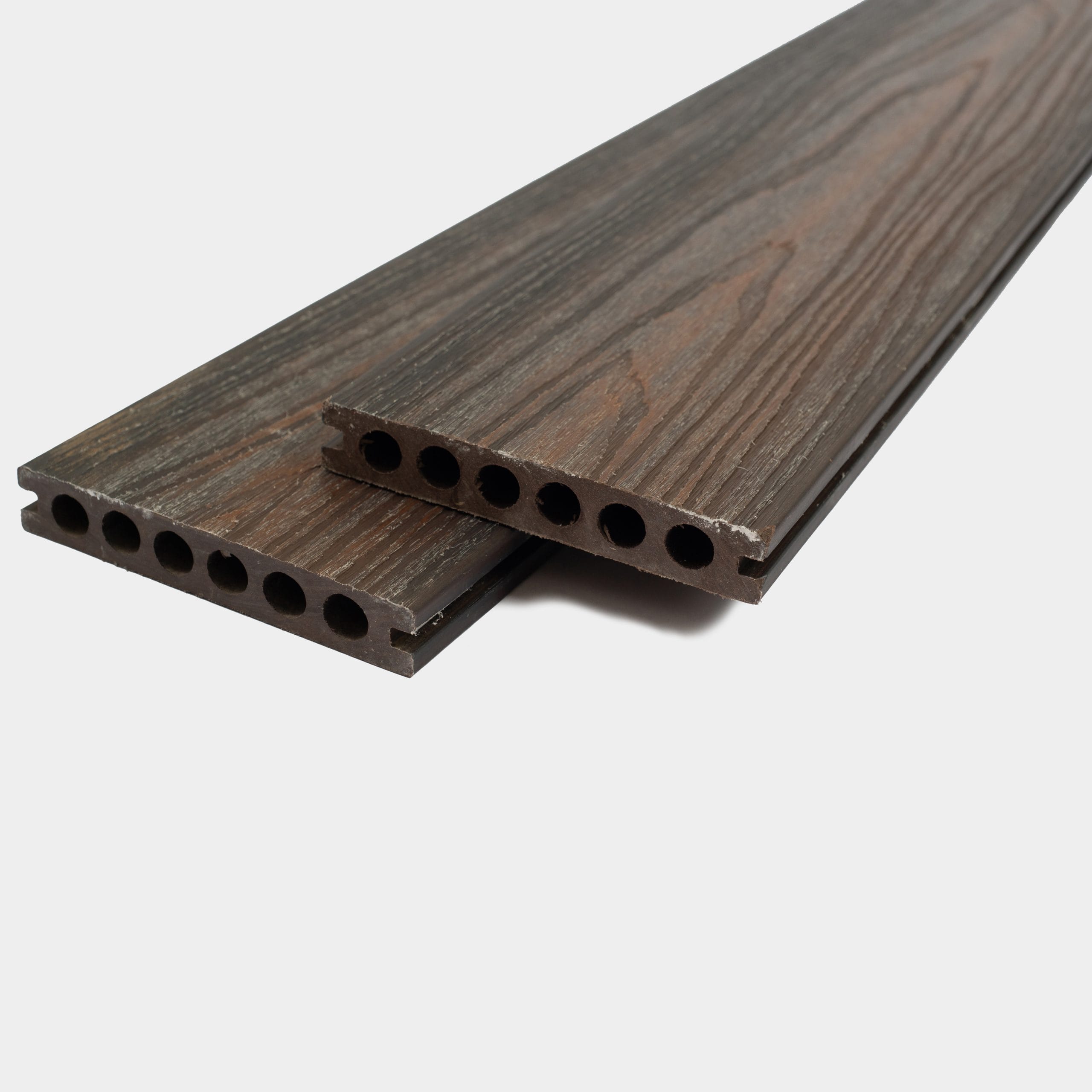 El co-extrusión es una técnica de fabricación en la que se prensa el diseño de las vetas en caliente, proceso que logra que estas sean más resistentes al uso y brinda una apariencia más natural. Por esa razón se puede notar a simple vista que la textura del producto es mucho más pronunciada, lo que le aporta el beneficio de ser antideslizante, su estructura es más maciza en comparación a los demás modelos de deck: rayado, veteado y veteado profundo.