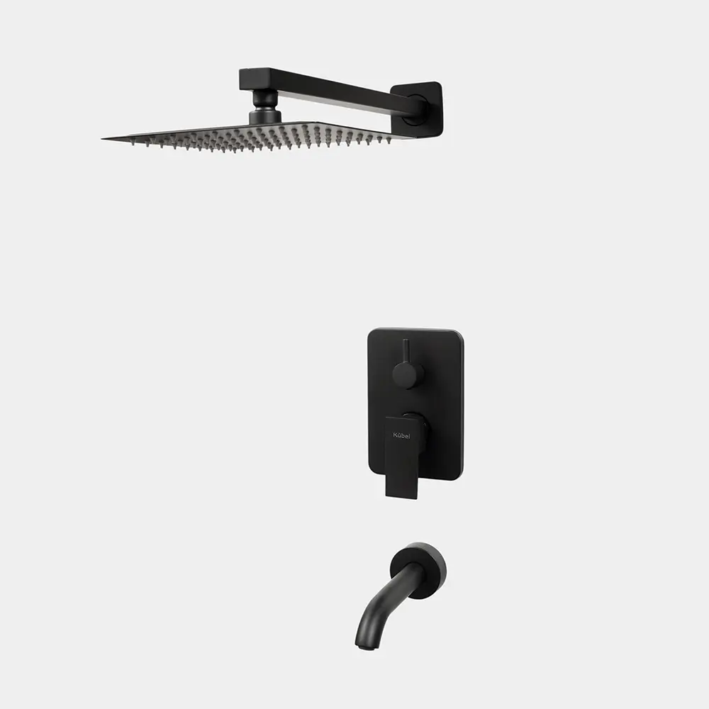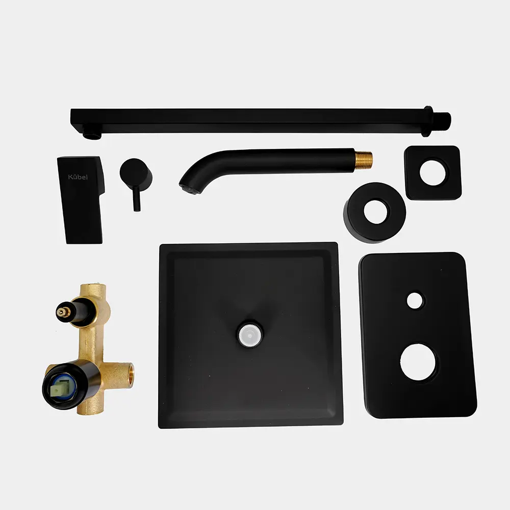 Ducha de Embutir 3 Cuerpos Flor Cuadrada Negra