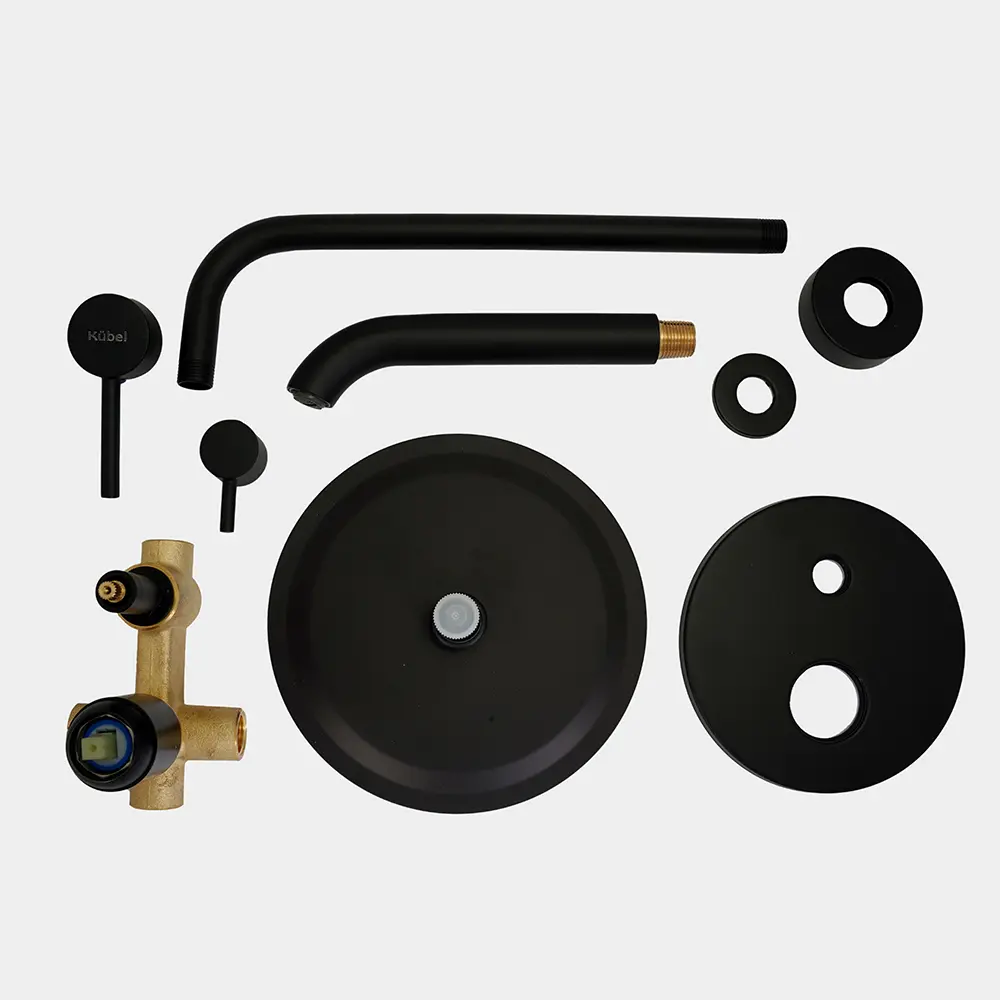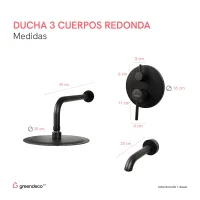 Ducha de Embutir 3 Cuerpos Flor Redonda Negra